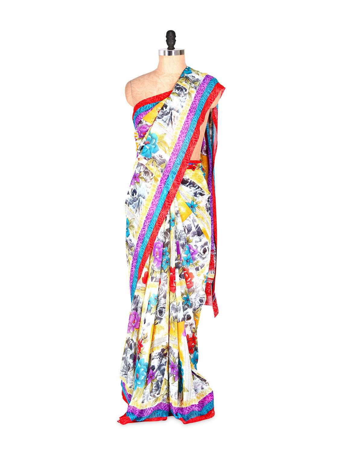 #1 lovely floral printed art silk saree with matching blouse piece & similar products...