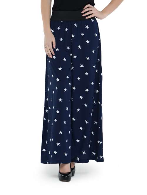 #1 navy blue palazzo pants with star prints & similar products...