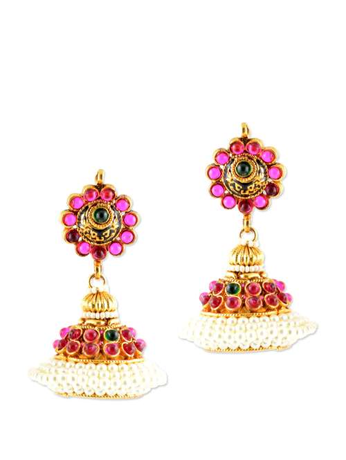 #1 faux pearl festive jhumkas with pink beads & similar products...
