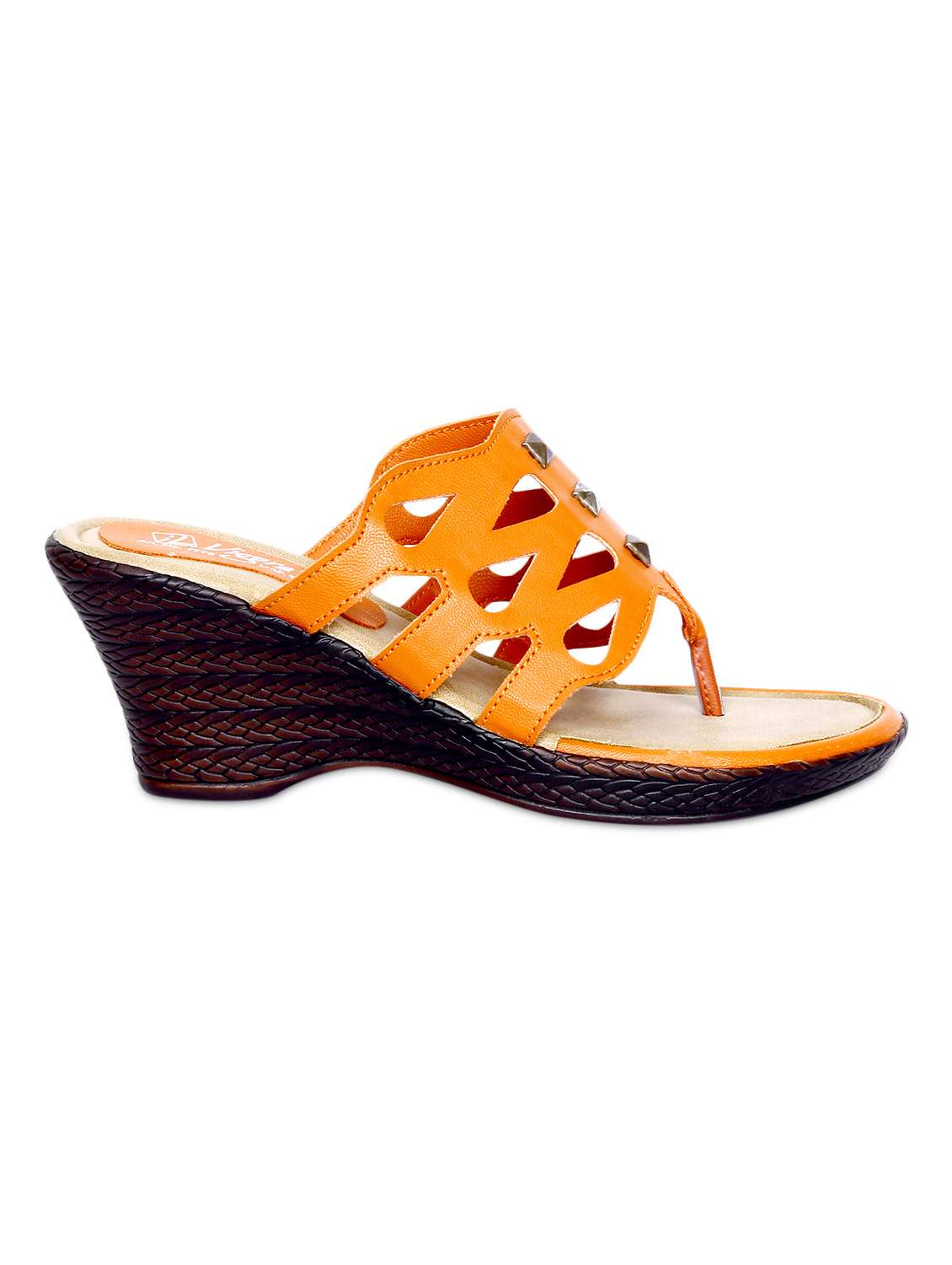 #3 orange cut-work detailed faux leather wedges & similar products...