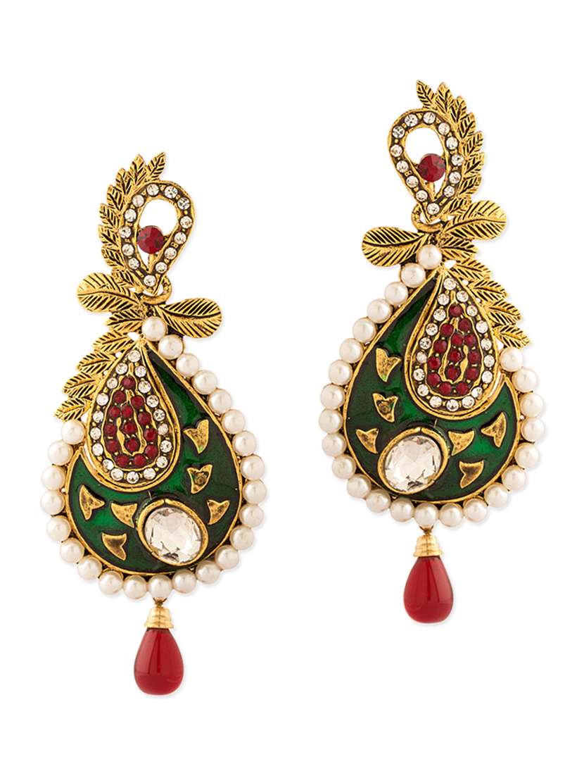 #3 Earrings With Green Enamel And Faux Pearls & similar products...