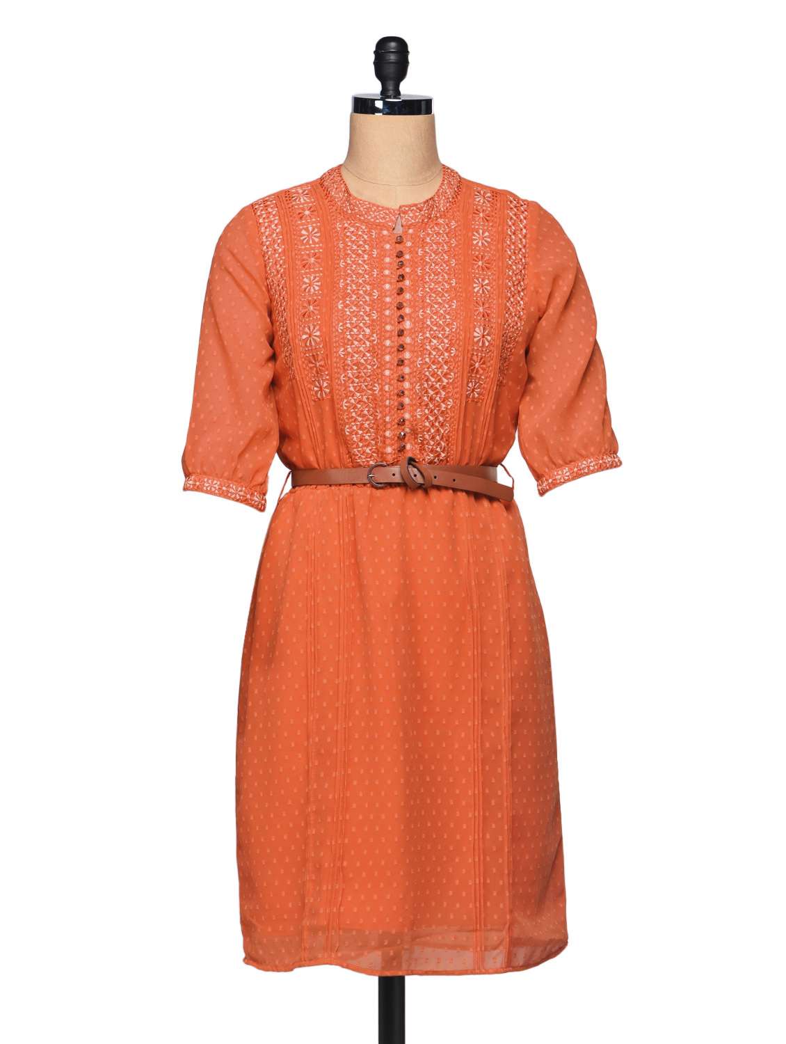 #1 rust orange polka dot georgette sheath dress & similar products...