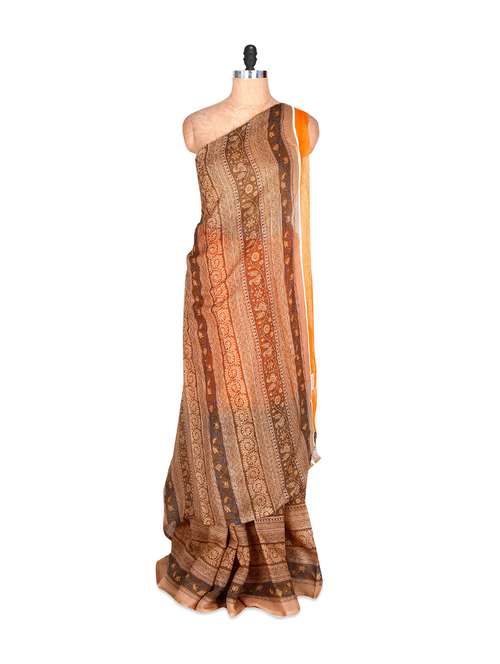 #1 ethnic touch luxe orange saree & similar products...