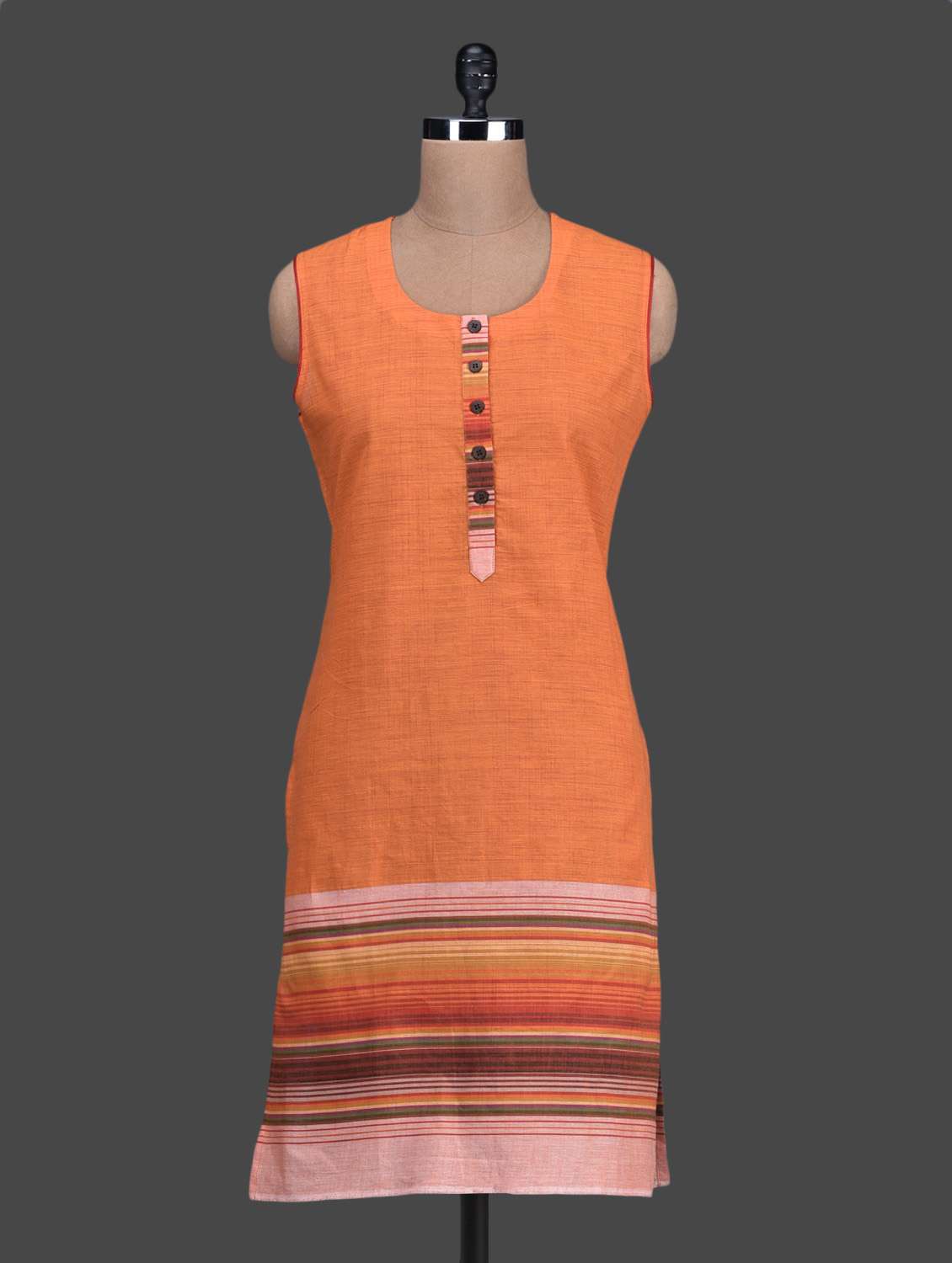 #1 Orange Striped Sleeveless Cotton Kurti & similar products...