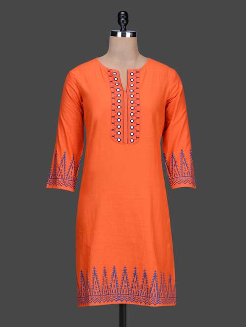 #1 orange embroidered cotton kurta & similar products...