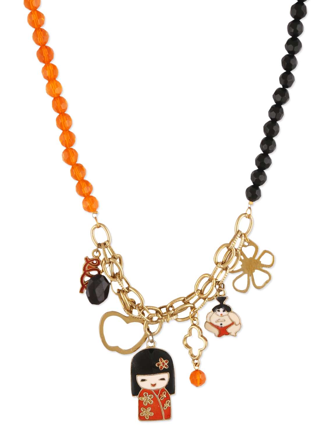 #3 orange beaded glass metallic necklace & similar products...