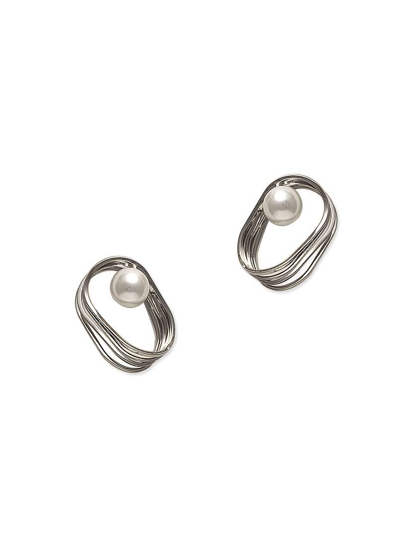 #4 silver faux pearl coil stud earrings & similar products...