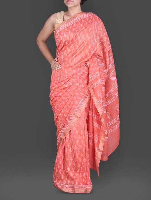 #1 coral hand block printed silk cotton saree & similar products...