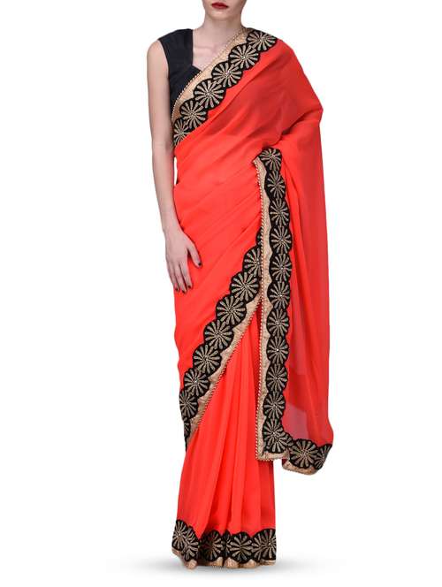 #1 orange beaded embroidered zardosi georgette saree & similar products...