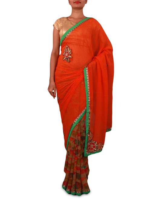 #1 printed orange georgette saree & similar products...