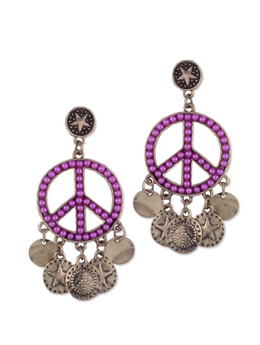 #3 purple beaded peace symbol and star charms studded earrings & similar products...