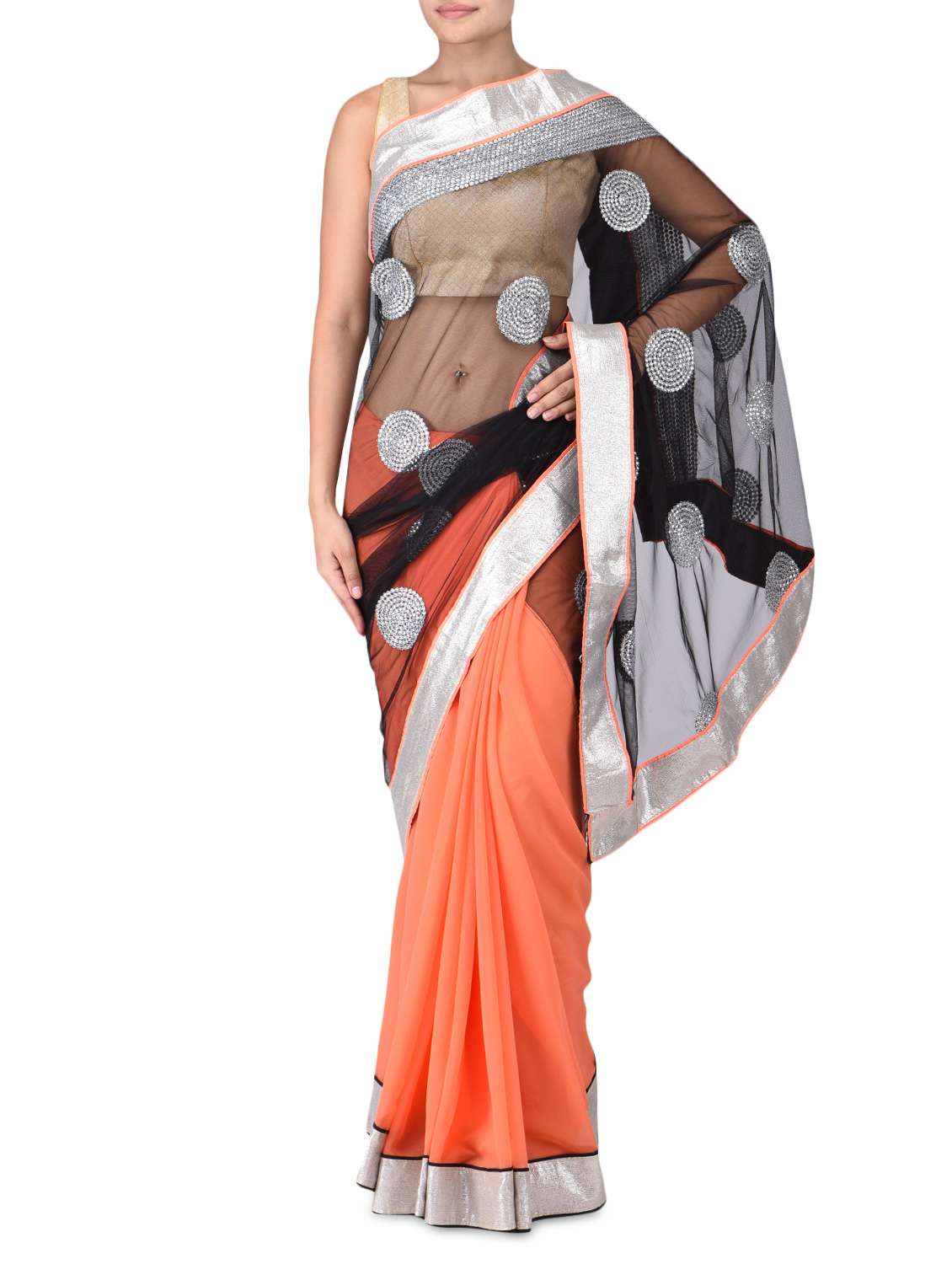 #1 embroidered black net and peach poly georgette saree & similar products...