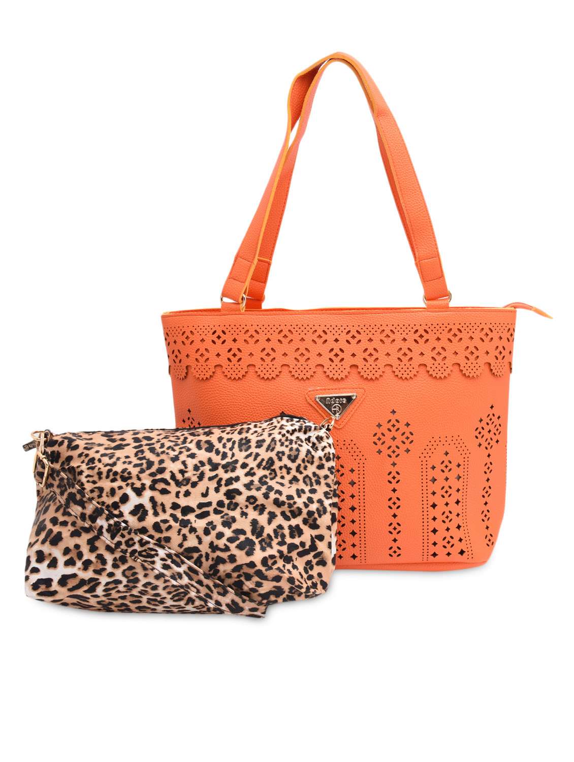 #3 orange cut-work detailed handbag with sling bag & similar products...