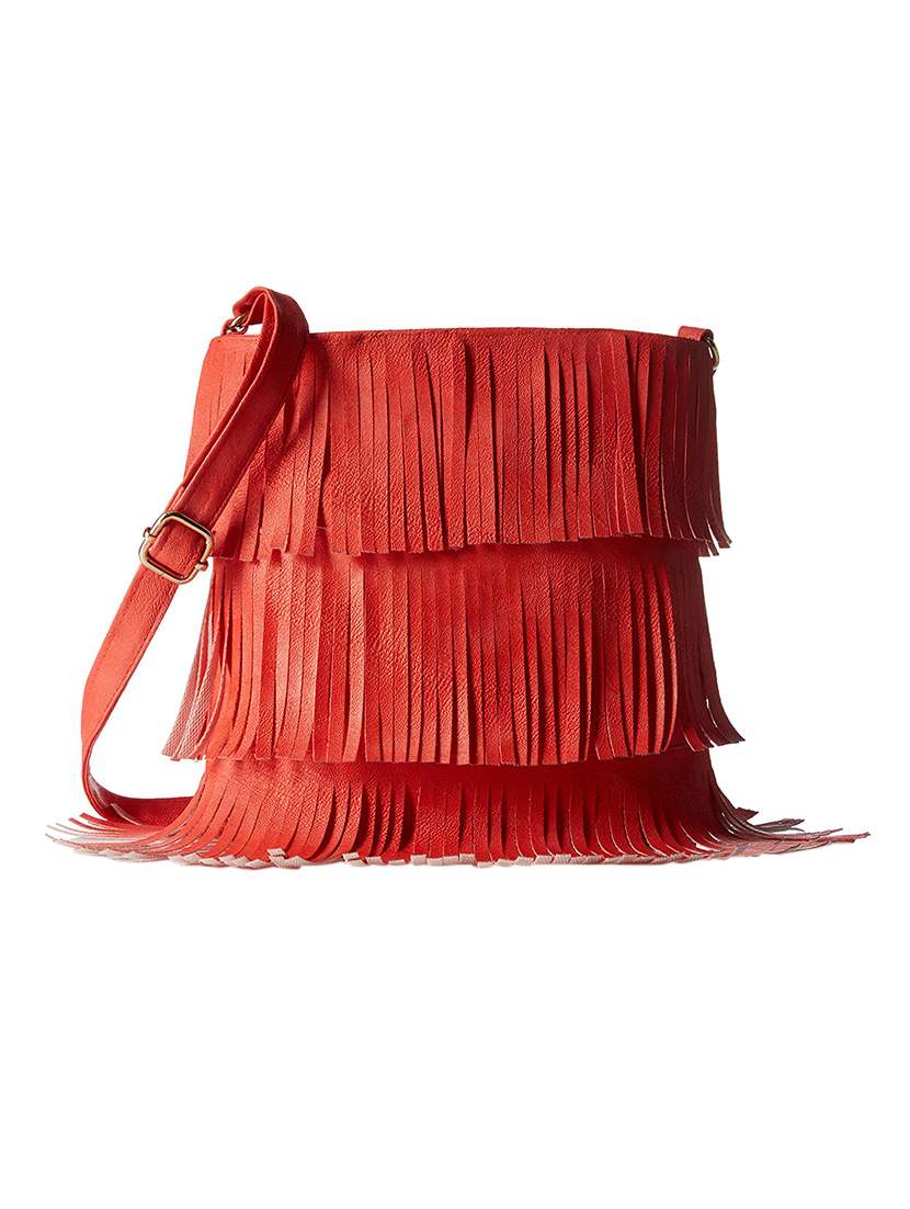 #4 orange leatherette fringed sling bag & similar products...