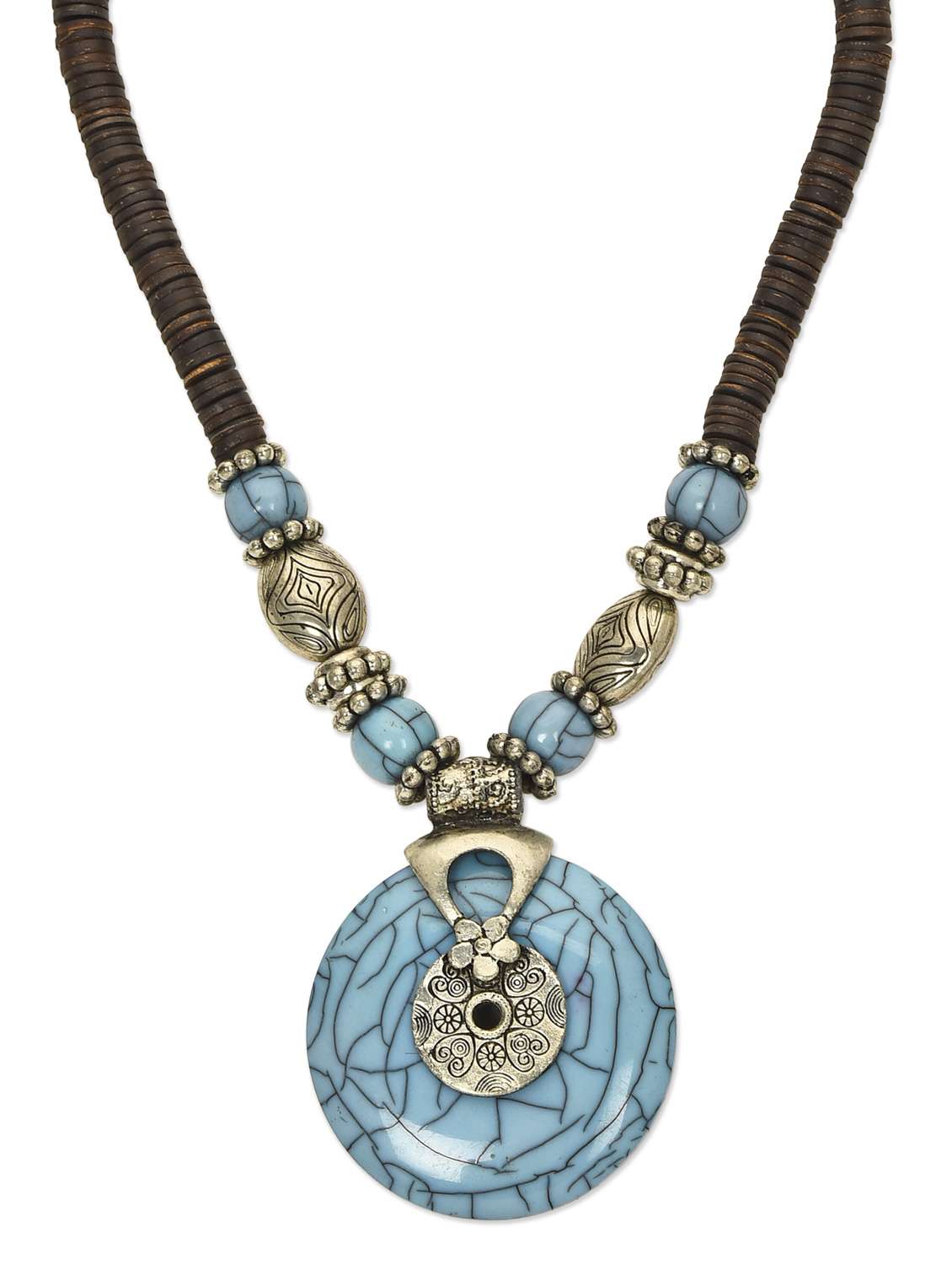 #2 sky blue tibetean chakra brown strand necklace & similar products...