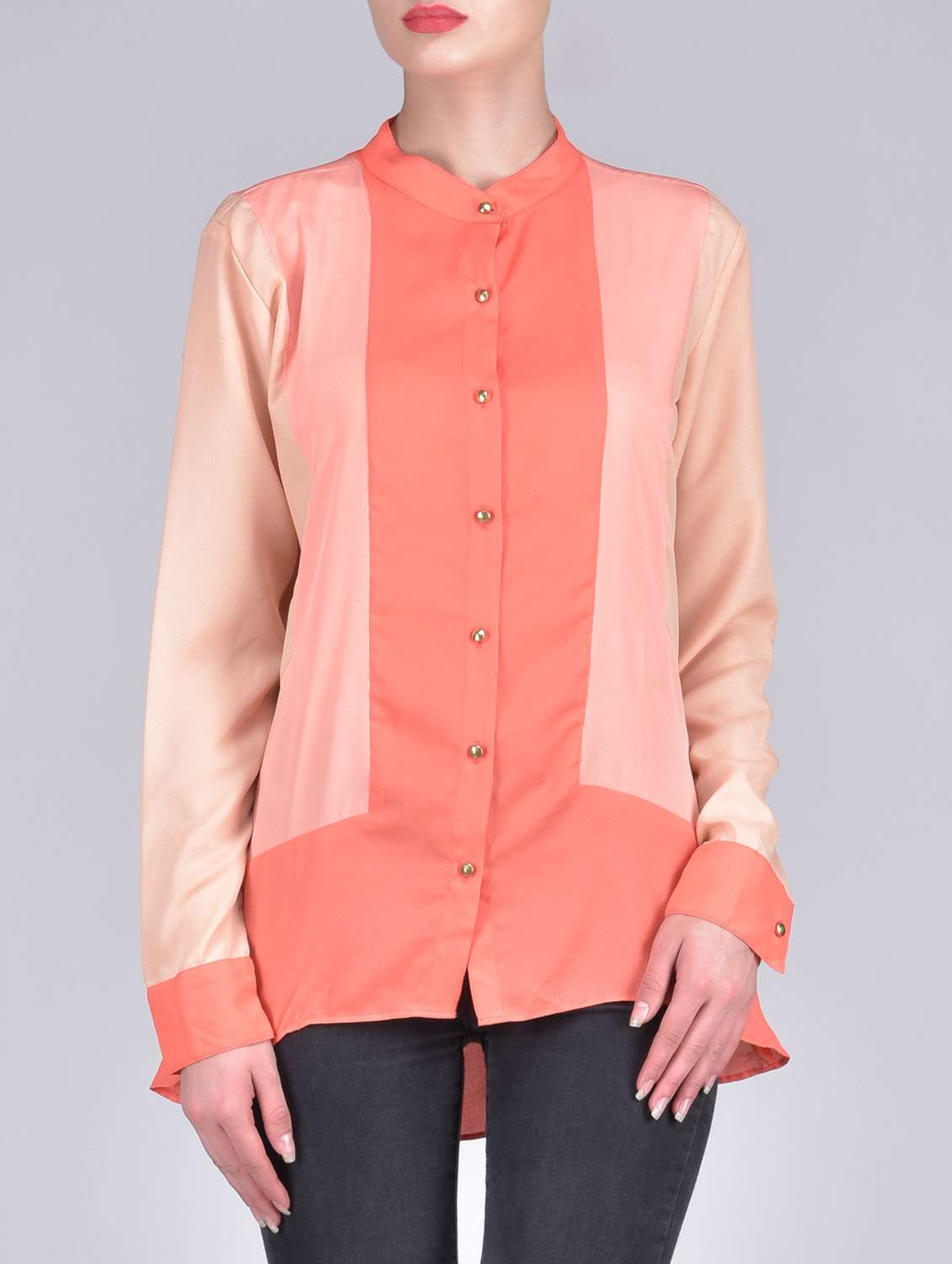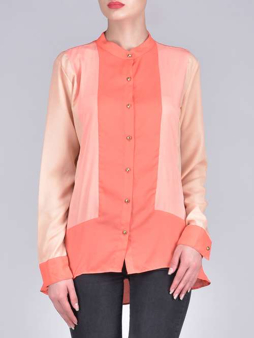 #1 peach and coral orange georgette shirt & similar products...