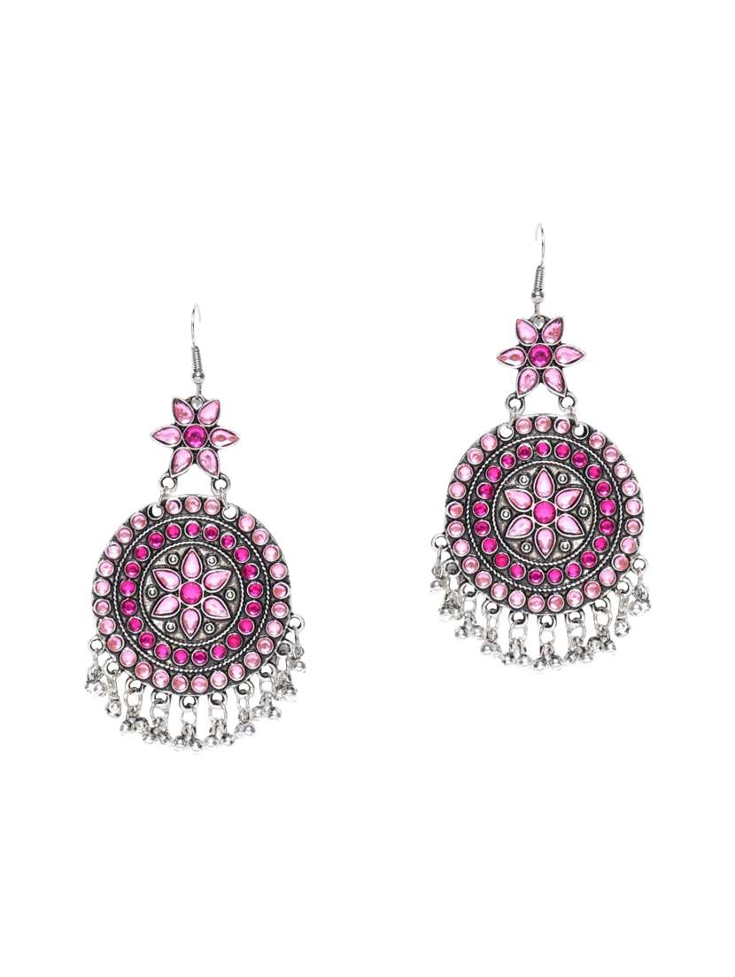 #2 pink silver tone stone earrings & similar products...