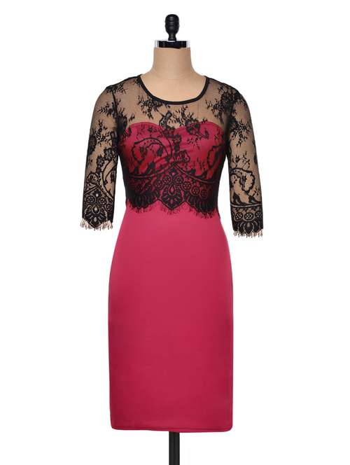 #1 red bodycon dress with lace overlay & similar products...