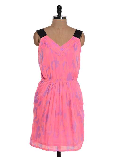 #1 scattered blue on pink black shoulder strap dress & similar products...