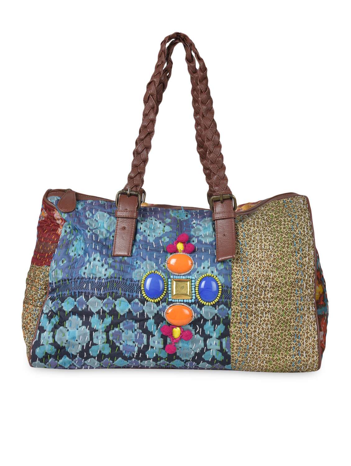 #4 multicoloured embellished fabric bag with braided handles & similar products...