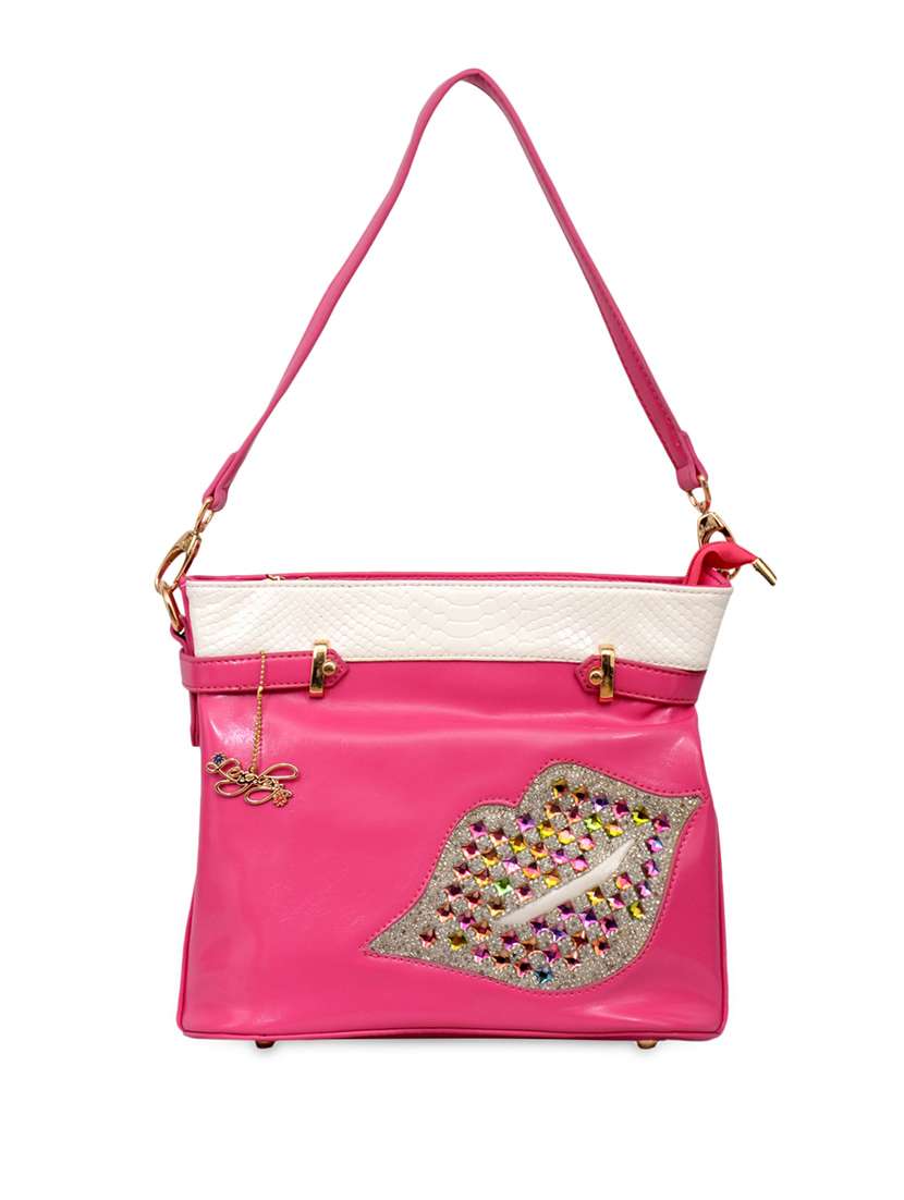 #2 Lips Embellished Pink Handbag & similar products...