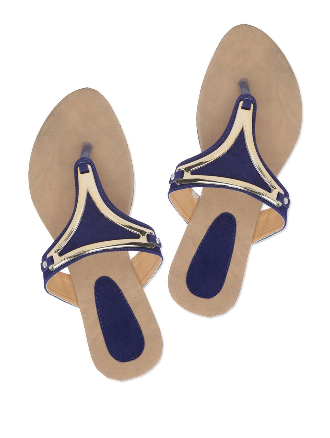 #4 trendy blue flat footwear with golden embellished straps & similar products...