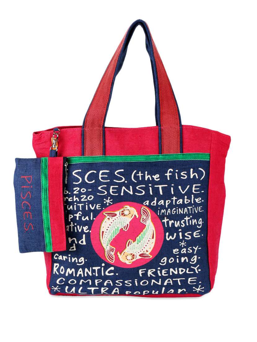 #3 blue & red pisces jute tote bag & similar products...