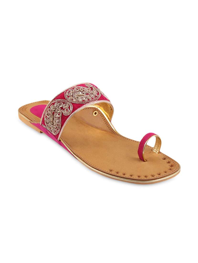 #3 pink paisley embellished suede kolhapuris & इसी तरह के उत्पाद...