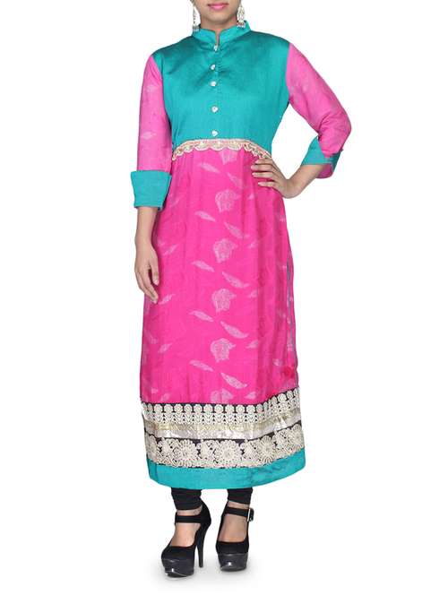 #1 pink green color, faux chiffon a- line kurta & similar products...
