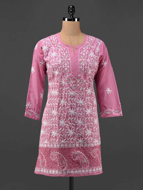 #1 Pink cotton Aari work Kurta & similar products...