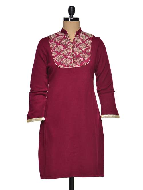 #1 printed yoke mandarin collar woollen kurta & similar products...