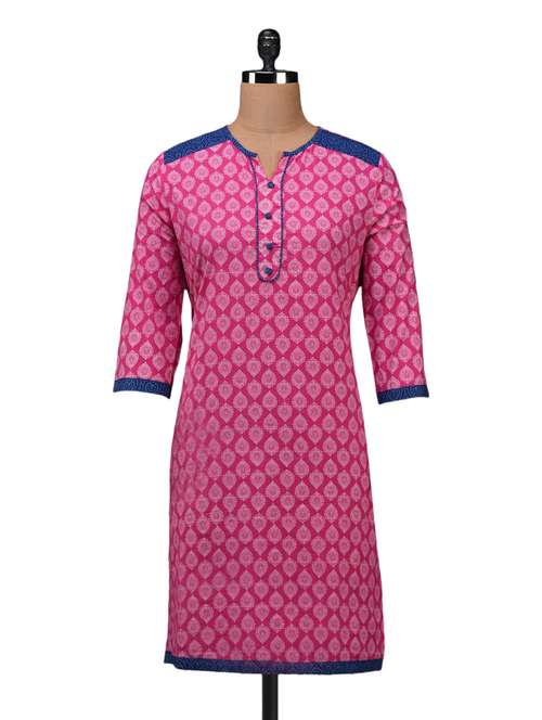 #1 pink printed quarter sleeves cotton kurta & similar products...
