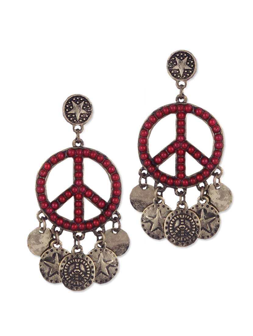 #4 maroon beaded peace symbol and star charms studded earrings & similar products...