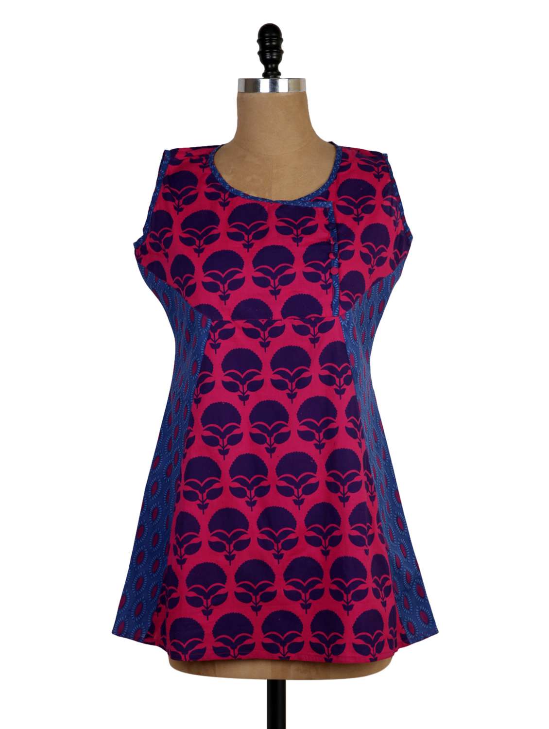 #1 Patterned pink and blue faux overlap kurta & similar products...