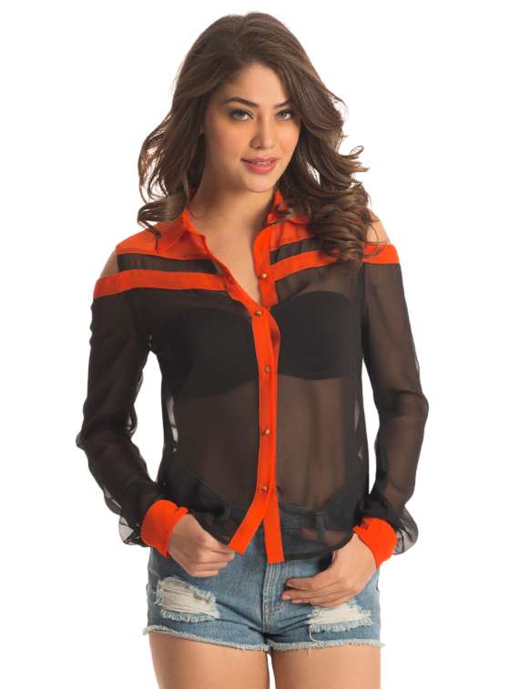 #1 black sheer shirt with tangerine trims & similar products...
