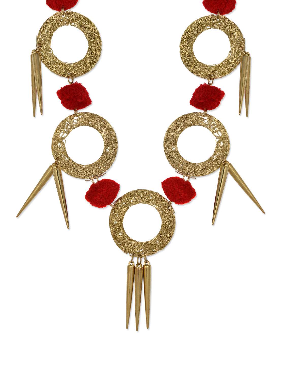 #3 unique red pom pom necklace with golden circular pattern and spikes & similar products...