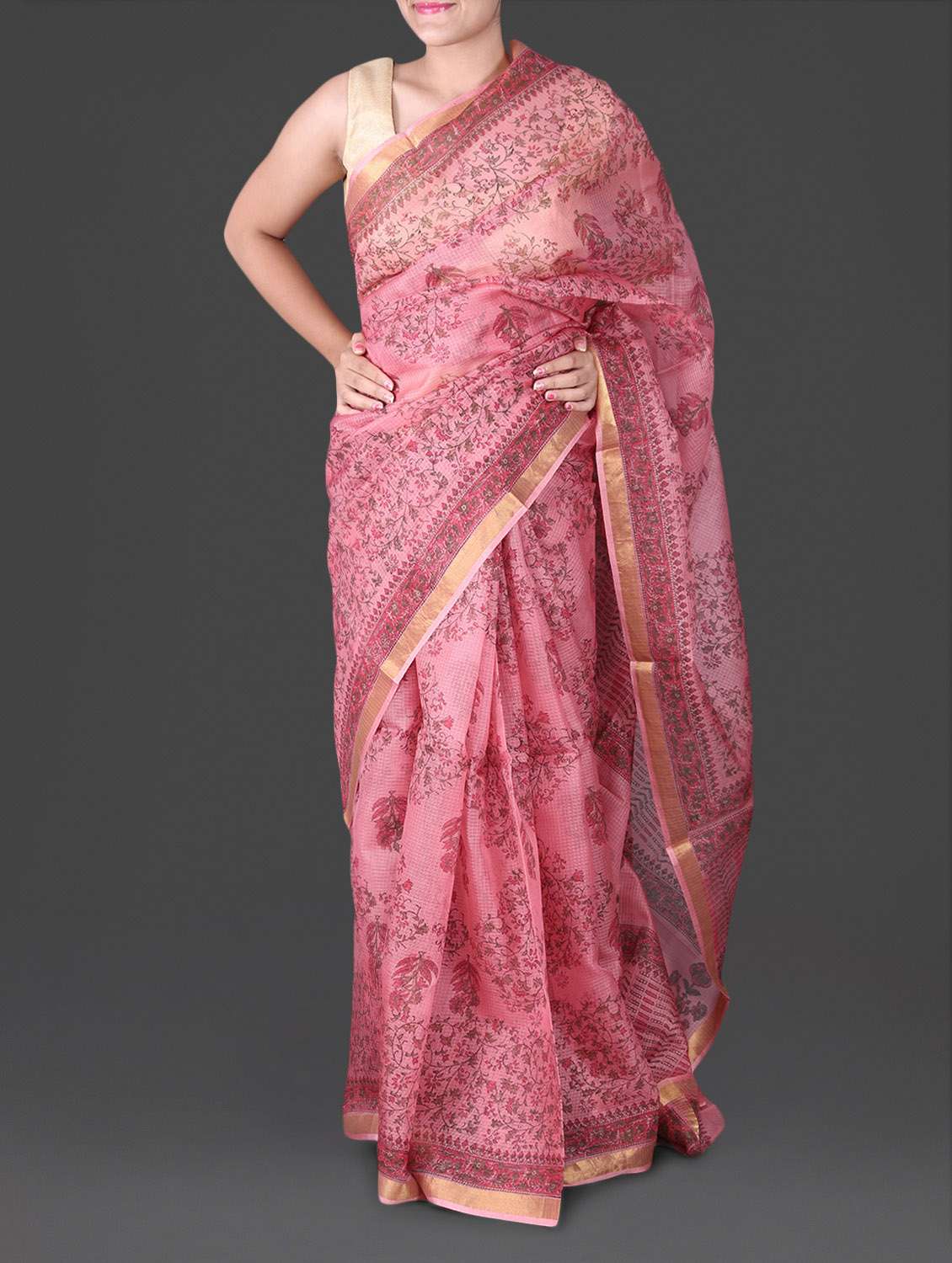 #1 zari border printed kota doria silk saree & similar products...