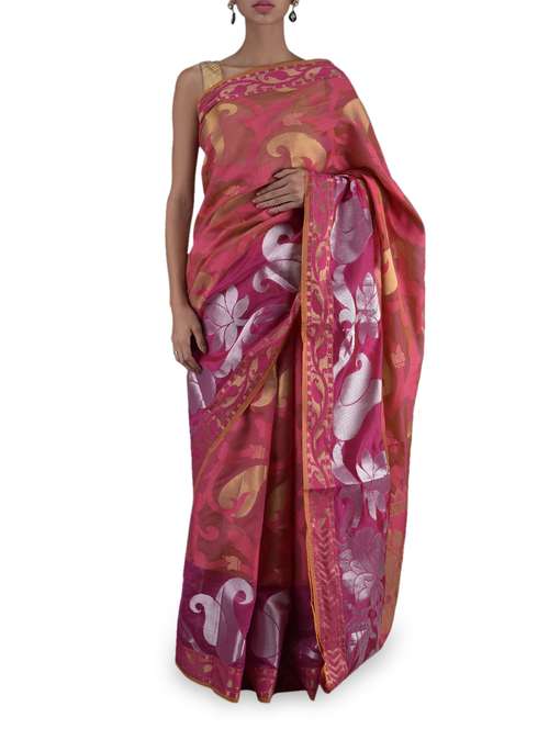 #1 pink jacquard chanderi silk saree & similar products...