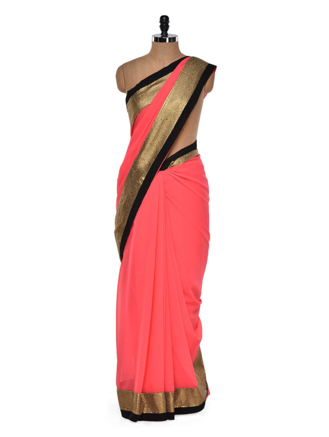 #1 Luxe pink saree with gold border & similar products...