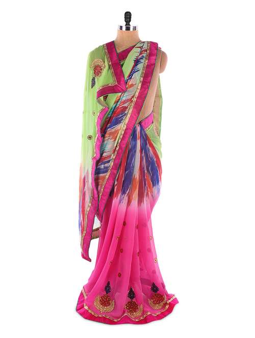 #1 dual toned printed chiffon saree & similar products...