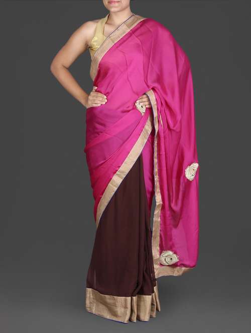 #1 pink and brown satin crepe saree & similar products...