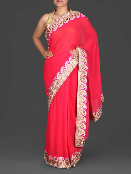 #1 Pink Embroidered Georgette Saree & similar products...