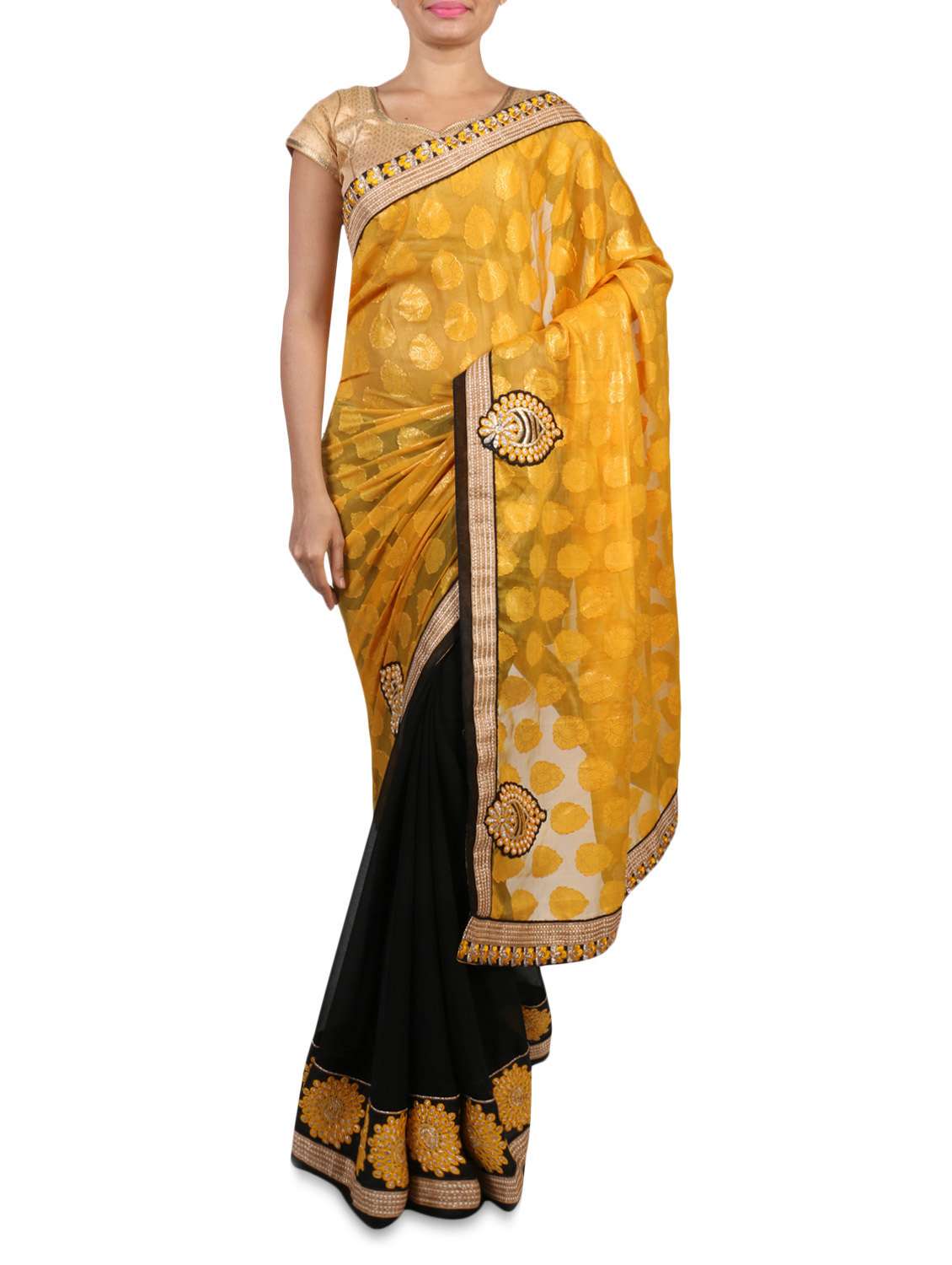 #1 pink georgette embroidered saree & similar products...