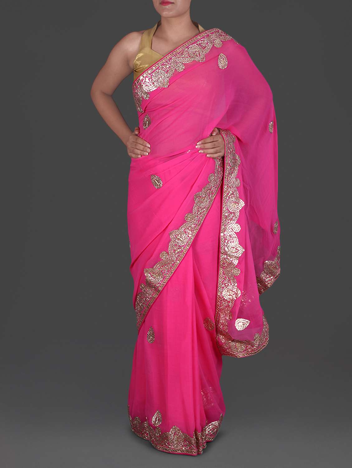 #1 Pink gota patti work georgette saree & similar products...