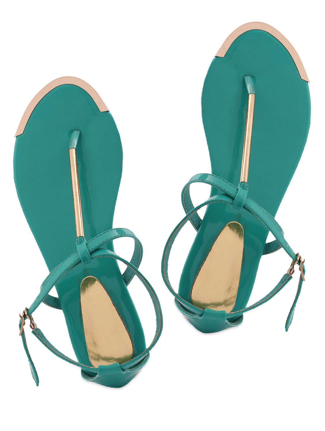 #4 gold trim teal strappy flat sandals & similar products...