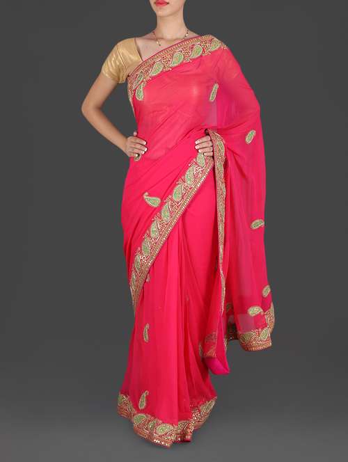 #1 Pink paisley gota patti work georgette saree & similar products...