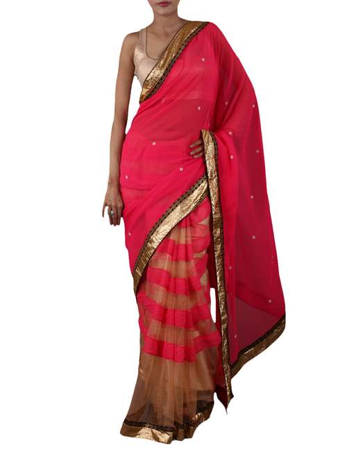 #1 pink and beige half and half georgette saree & similar products...