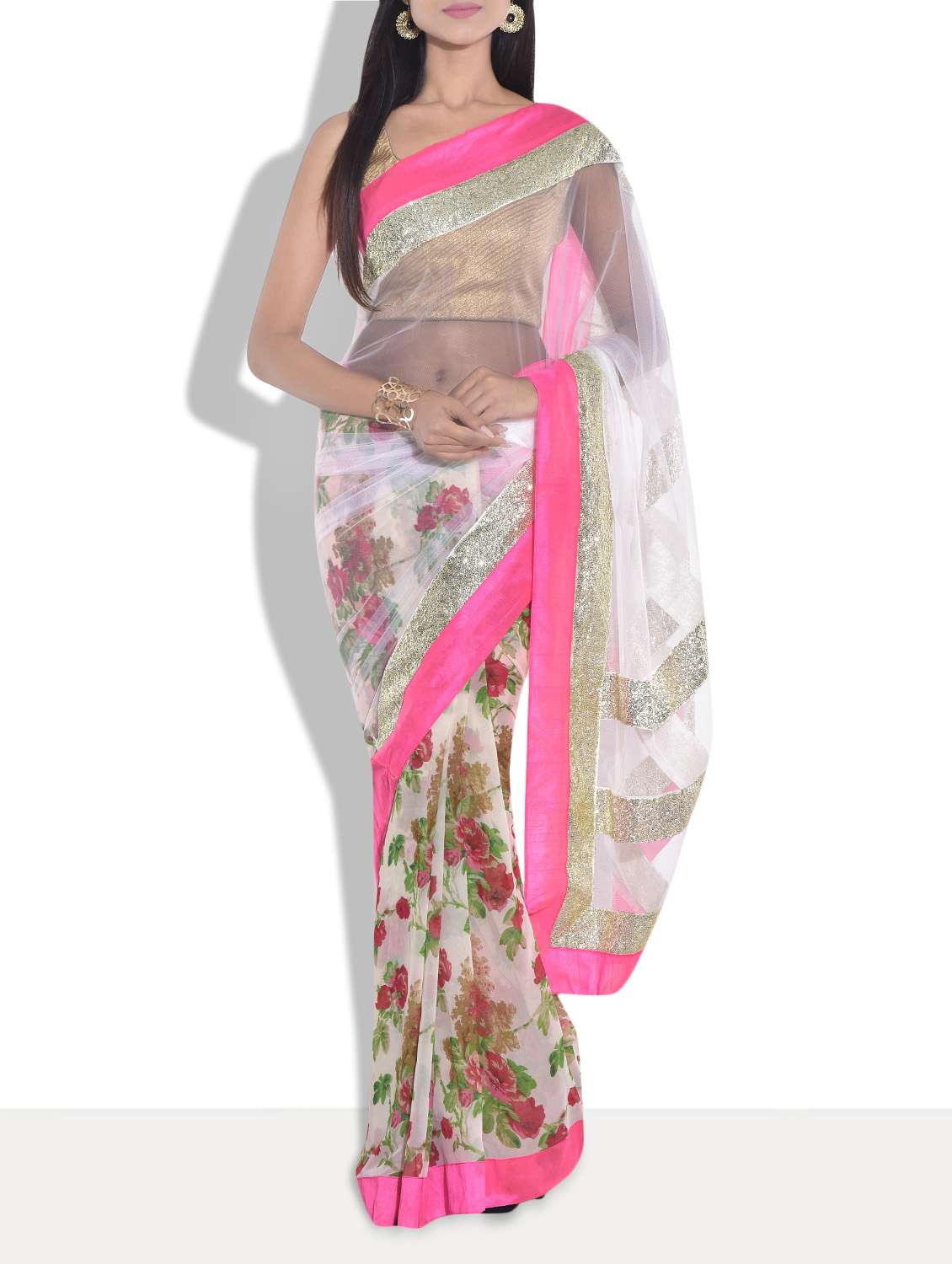 #1 pink n off white sequined n floral saree & similar products...