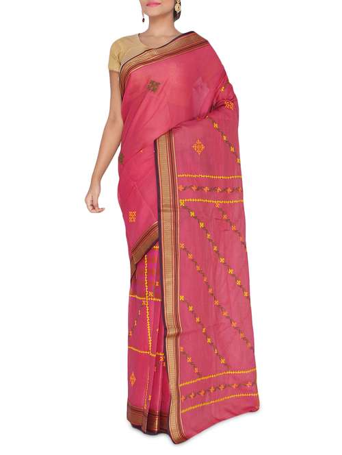 #1 pink embroidered hand woven cotton handloom saree & similar products...
