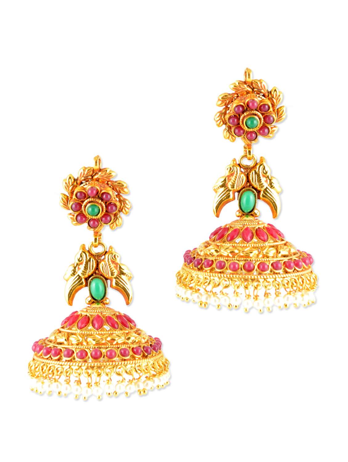 #2 ethnic gold jhumkas with magenta beads & similar products...